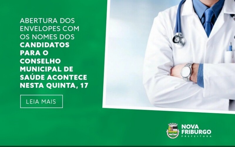 Na próxima quinta-feira, 17 de fevereiro, a Prefeitura realizará a abertura dos envelopes onde estão os nomes dos candidatos para integrarem o Conselho Municipal de Saúde de Nova Friburgo