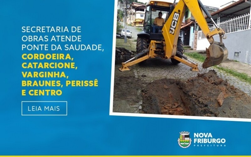 SECRETARIA DE OBRAS ATENDE PONTE DA SAUDADE, CORDOEIRA, CATARCIONE, VARGINHA, BRAUNES, PERISSÊ E CENTRO