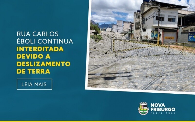 RUA CARLOS ÉBOLI CONTINUA INTERDITADA DEVIDO A DESLIZAMENTO DE TERRA