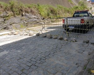 A via está interditada após um deslizamento de terra ocorrido na madrugada do último sábado, 12. O local passará por uma avaliação feita pela equipe técnica da Secretaria de Obras para controlar possíveis novos deslizamentos.