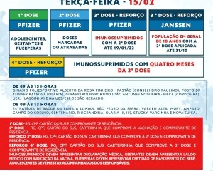 *Na terça-feira, 15, a terceira dose - reforço para o público geral será aplicado o imunizante da Janssen.