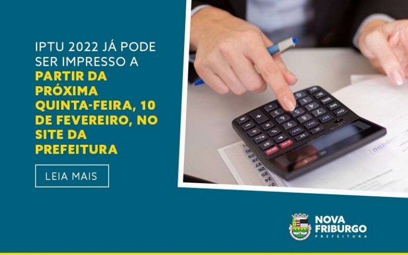 IPTU 2022 JÁ PODE SER IMPRESSO A PARTIR DO PRÓXIMO DIA10 DE FEVEREIRO
