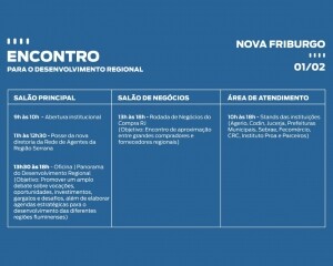 O município de Nova Friburgo recebe, nesta terça-feira (1º /2), a partir das 9h, no Sesc Nova Friburgo, o Encontro para o Desenvolvimento Regional promovido pela Secretaria de Desenvolvimento Econômico, Energia e Relações Internacionais do Governo do Estado do Rio de Janeiro.