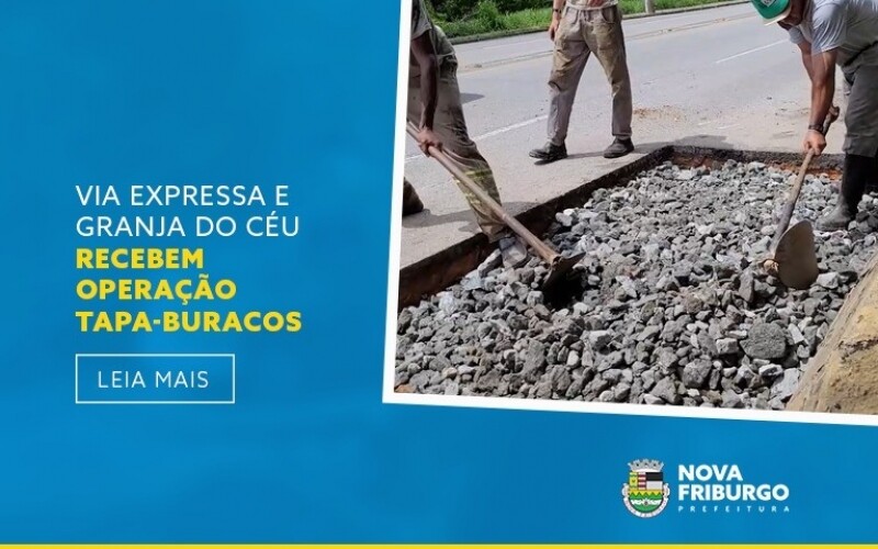 Nesta quinta-feira, dia 13, a Prefeitura de Nova Friburgo, através da Secretaria de Obras, está realizando a operação tapa-buracos em dois pontos do município. Uma equipe está recuperando um trecho da Via Expressa, sentido Cônego, e outra equipe segue na Granja do Céu. Na quarta-feira, dia 12, o tapa-buracos aconteceu na Rua Maria Lourdes Knupp Tardin, no Parque Santa Luzia.