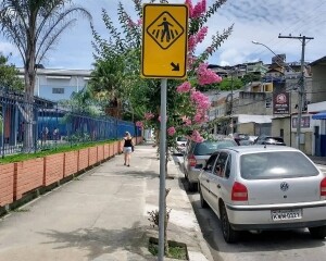 Visando aprimorar a segurança de pedestres, sobretudo idosos e pessoas com mobilidade reduzida que se deslocam diariamente até o Posto de Saúde Tunney Kassuga, na Rua Vicente Sobrinho, em Olaria, a SMOMU autorizou a construção de uma faixa elevada de travessia no local. Junto ao início da construção, a equipe de sinalização vertical realizou a devida implantação dos sinais exigidos e também fez a pintura do dispositivo.
