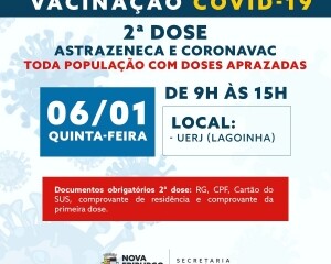 A campanha de reforço continua para toda a população com mais de 18 anos, que já completou quatro meses da segunda dose, na terça e quarta-feira, 04 e 05 de janeiro. Nestes dias também será feita a aplicação de reforço em imunossuprimidos que completaram o esquema vacinal até dia 05 de dezembro. Para quem tomou a janssen, a vacina será oferecida na quinta-feira, 06, na Universidade Estadual do Rio de Janeiro, a UERJ.