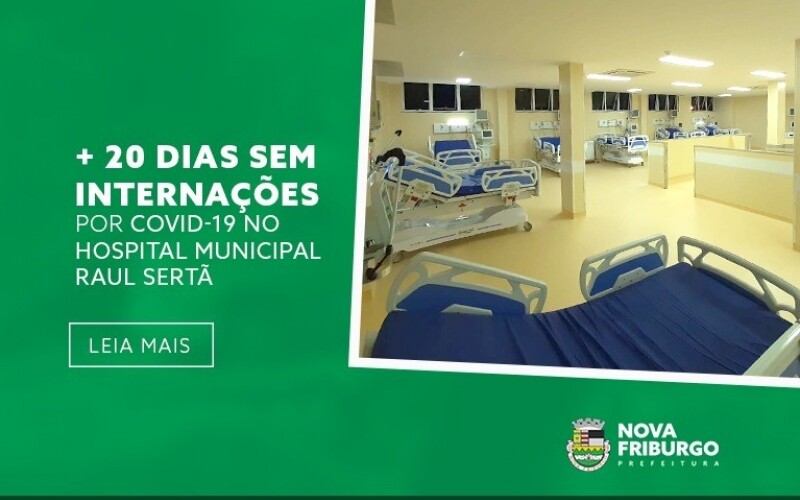 Ótima noticia: a Prefeitura, através da Secretaria Municipal de Saúde, apurou que há mais de 20 dias não foram realizadas internações por Covid-19 no Hospital Municipal Raul Sertã.