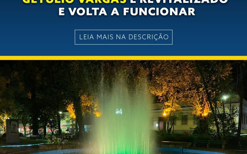 A Prefeitura de Nova Friburgo, através da Secretaria Municipal de Serviços Públicos, reativou na noite da última quarta-feira, 15 de dezembro, o tradicional chafariz da Praça Getúlio Vargas, no Centro. O equipamento foi totalmente revitalizado e devolvido à comunidade friburguense, que carecia de mais atenção e cuidado há alguns anos.