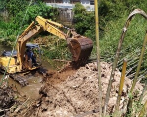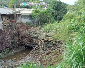 SUBPREFEITURA DE OLARIA, CÔNEGO E CASCATINHA RETIRA SOQUEIRA DE BAMBUS QUE OBSTRUÍA O RIO