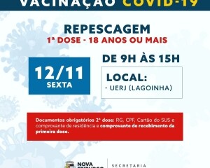 Além disso, a prefeitura também realizará a repescagem da primeira dose para a população com mais de 18 anos, na Universidade Estadual do Rio de Janeiro (Uerj), na Lagoinha.