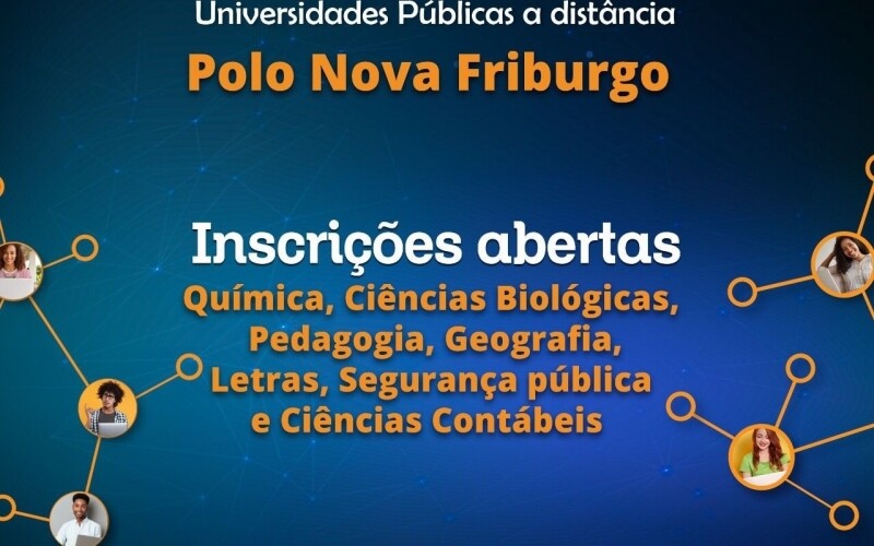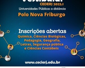 O vestibular para os cursos de graduação oferecidos pelo Polo Cederj em 2022 recebe inscrições até a próxima terça-feira, dia 9. Os interessados podem se inscrever acessando o site www.https://www.cecierj.edu.br/. A taxa, no valor de R$ 85,00, deve ser paga impreterivelmente até o dia 10. Em Nova Friburgo são oferecidos cursos superiores de ciências biológicas, ciências contábeis, letras, geografia, química, pedagogia e segurança pública.