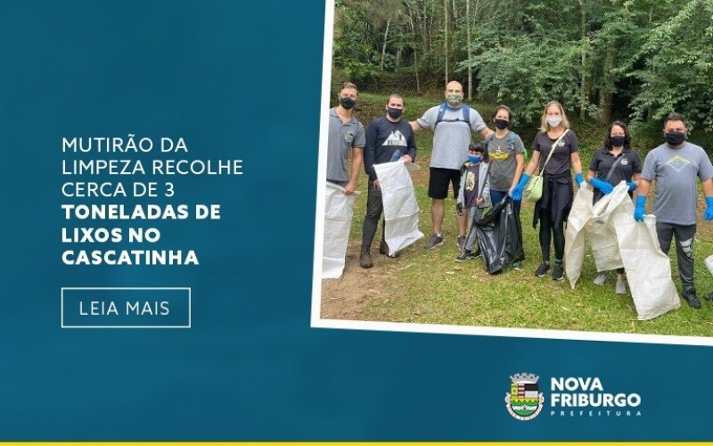 Uma iniciativa envolvendo moradores do bairro Cascatinha, com o apoio de entidades civis e da Prefeitura de Nova Friburgo, através das secretarias municipais do Meio Ambiente e Desenvolvimento Urbano Sustentável, de Turismo e Marketing, de Esportes e Lazer, e da Subprefeitura de Olaria, Cônego e Cascatinha, promoveu a limpeza em montanhas, trilhas e cachoeiras nos arredores do Cascatinha e da Caledônia, incluindo o Parque Municipal Juarez Frotté. O Mutirão da Limpeza foi promovido domingo, 24, e contabilizou o recolhimento de aproximadamente três toneladas de lixo descartados irregularmente na natureza.