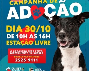 Mais uma edição da campanha de adoção responsável promovida pela Subsecretaria do Bem-Estar Animal (Ssubea), setor da Secretaria Municipal do Meio Ambiente e Desenvolvimento Urbano Sustentável, da Prefeitura de Nova Friburgo, será realizada na Estação Livre, no Centro. O evento de adoção acontecerá no próximo sábado, dia 30, das 10h às 16h, em parceria com os abrigos e grupos de proteção animal da cidade.