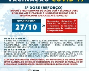 Além disso, conforme divulgado anteriormente, a vacinação de reforço em idosos e profissionais de saúde que tomaram a segunda dose até o dia 22 de abril e imunossuprimidos que completaram o esquema vacinal até dia 30 de setembro também poderão receber o imunizante na quarta-feira.