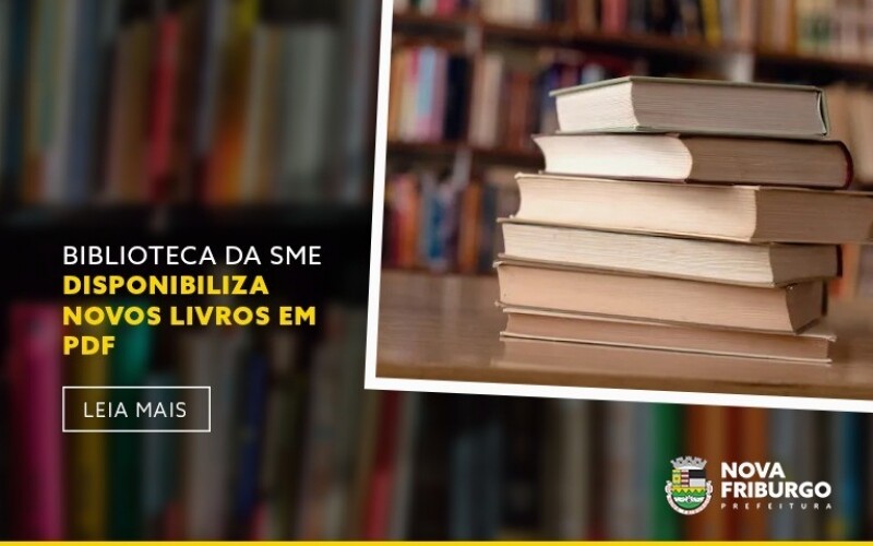 Na semana em que comemora-se o Dia Nacional do Livro, no dia 29 de outubro, a Biblioteca da SME (Secretaria Municipal de Educação da Prefeitura de Nova Friburgo) vai disponibilizar novos cards com livros em PDF. Será liberado um card por dia, ao longo desta semana, incluindo um em audiovisual, totalizando 500 livros. Para ter acesso aos mais de 1.200 títulos diferentes, incluindo os já existentes, basta acessar https://smenf.wordpress.com/category/biblioteca/livros-em-pdf/.