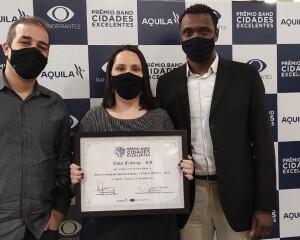 Nova Friburgo recebeu o prêmio de excelência na gestão pública de Desenvolvimento Socioeconômico e Ordem Pública, oferecido pelo Grupo Bandeirantes e Instituto Aquila. O chefe de Gabinete, Daniel Figueira, representou o prefeito Johnny Maycon na cerimônia realizada nesta sexta-feira, 22, na sede da Fecomércio, no Rio de Janeiro, onde recebeu o certificado alusivo à qualidade da gestão. A solenidade seguiu todos os protocolos de segurança e reuniu representantes de diversos municípios fluminenses. Participaram ainda desse evento a secretária de Gabinete, Mayra Martins, e o assessor Vinicius Marques.