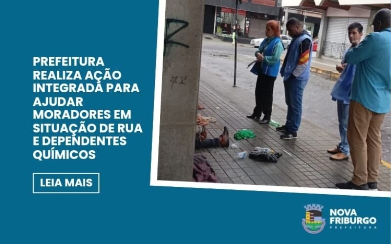 A Prefeitura de Nova Friburgo realizou, na manhã desta segunda-feira, 14, uma ação interdisciplinar envolvendo a Secretaria de Desenvolvimento Social e Direitos Humanos, as Subsecretarias de Políticas sobre Drogas e Saúde Mental, além da Guarda Municipal, com o apoio da Polícia Militar. A ação de abordagem às pessoas em situação de rua e dependentes químicos foi realizada no entorno do Shopping Roseiral, localizado no bairro de Olaria.
