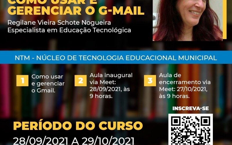 A Prefeitura de Nova Friburgo, por meio da Secretaria Municipal de Educação, realizará mais uma capacitação para os professores da rede. Organizado pelo setor NTM - Núcleo de Tecnologia Educacional Municipal, o curso "Como usar e gerenciar o g-mail" será ministrado pela especialista em Educação Tecnológica, Regilane Vieira Schote Nogueira. A aula inaugural será no dia 28 de setembro, às 9h, via Meet, e se estenderá até o dia 29 de outubro. Vale frisar que as aulas ficarão gravadas e serão disponibilizadas para quem não puder assistir em tempo real. Os interessados devem se inscrever pelo seguinte link: https://forms.gle/uswZG8y8T7L8xv7U6 ou CLICANDO AQUI.