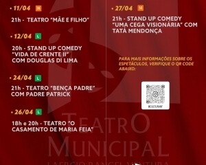 SECRETARIA DE CULTURA DIVULGA PROGRAMAÇÃO DE ABRIL NO TEATRO MUNICIPAL