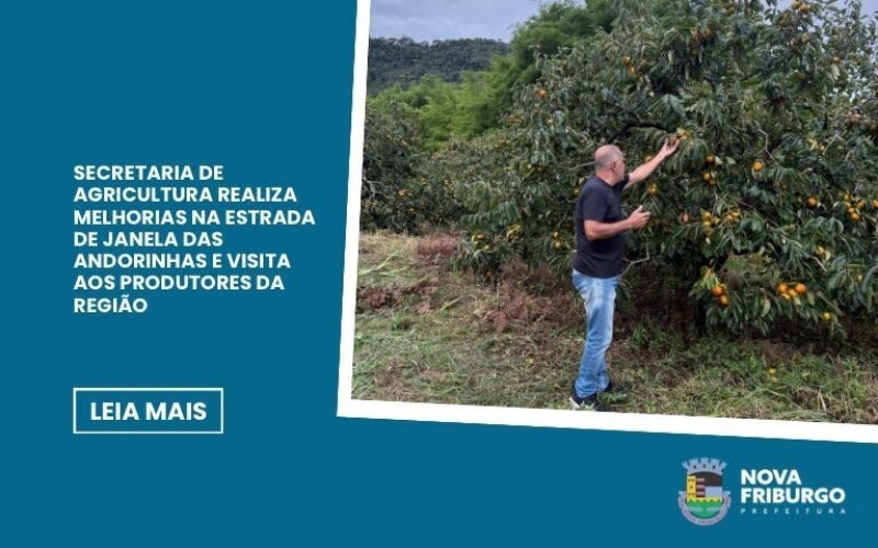 No último dia 20, a equipe da Secretaria de Agricultura e Desenvolvimento Rural esteve na Estrada de Janela das Andorinhas, no 2° distrito, para acompanhar de perto as melhorias realizadas pela Prefeitura. Essa estrada é fundamental para o escoamento da produção agrícola da região, especialmente por ser uma das áreas de maior produção de caqui de Nova Friburgo.