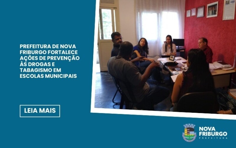 A Prefeitura de Nova Friburgo tem atuado regularmente no trabalho de conscientização e prevenção ao uso de drogas, através de ações interligadas entre setores. Nesta sexta-feira, 21, a Secretaria de Saúde, por meio da Subsecretaria de Políticas sobre Drogas (Subsempod), realizou uma importante reunião com o objetivo de intensificar as ações nas escolas municipais. O encontro contou com a presença do Tenente PM Torres, coordenador local do Programa Educacional de Resistência às Drogas (PROERD), e representantes da Coordenação de Controle do Tabagismo, responsáveis pelo Programa “Saúde na Escola”, da Secretaria Municipal de Saúde, além da equipe da Subsempod.