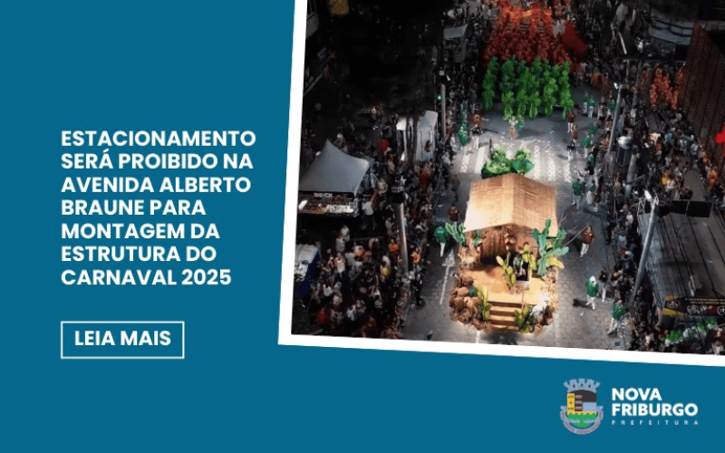 A Prefeitura de Nova Friburgo, por meio da Secretaria de Mobilidade e Urbanismo (Semu), publicou na edição de segunda-feira, 17 de fevereiro, do Diário Oficial Eletrônico do Município, a Portaria nº 001/2025, que torna pública a vedação de parada e estacionamento, bem como a interdição de vias para os preparativos do Carnaval 2025.