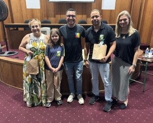 A Prefeitura de Nova Friburgo, por meio da Secretaria Municipal de Educação realizou, na última quinta-feira, 28, no Auditório da SME, a cerimônia para entrega dos prêmios aos cinco alunos da Rede Municipal de Educação que venceram na etapa estadual do Prêmio MPT na Escola, promovido pelo Ministério Público do Trabalho. Estiveram presentes no encontro, o prefeito, Johnny Maycon, a secretária de Educação, Caroline Klein, coordenadores, professores, gestores e estudantes da Rede Municipal de Educação.