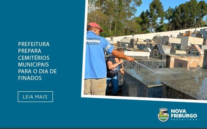 Com a aproximação do Dia de Finados, 2 de novembro, a Prefeitura de Nova Friburgo está realizando a manutenção dos cemitérios públicos municipais: São João Batista, Trilha do Céu, Riograndina, Campo do Coelho e São Pedro da Serra. Os cemitérios já estão sendo preparados, pois alguns visitantes preferem se antecipar à data para evitar a grande movimentação no dia.