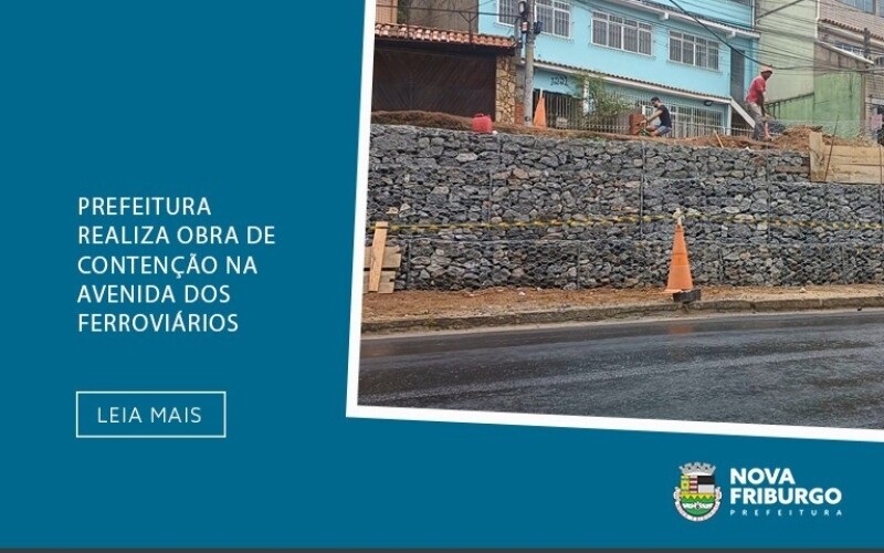 A Prefeitura de Nova Friburgo, por meio da Secretaria de Obras e da Subprefeitura de Conselheiro Paulino, segue trabalhando na Avenida dos Ferroviários. Após a realização da pavimentação asfáltica, o local está recebendo uma obra de contenção com gaiola de gabião, no trecho de Duas Pedras, sentido Jardim Ouro Preto.