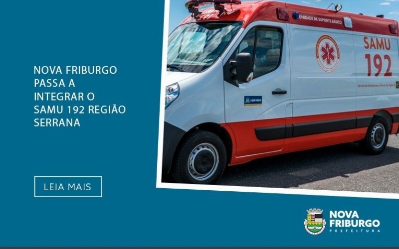 A Base Descentralizada do Serviço de Atendimento Móvel de Urgência (SAMU 192) de Nova Friburgo será inaugurada nesta quarta-feira, 9 de outubro, às 16h, no pátio do Hospital Municipal Raul Sertã. A cidade passa então a integrar o sistema estadual e implanta oficialmente o atendimento 24 horas. Trata-se de uma grande vitória da Prefeitura de Nova Friburgo, por meio da Secretaria Municipal de Saúde, em parceria com a Secretaria de Saúde do Estado do Rio de Janeiro e Corpo de Bombeiros, através dela será realizado o antigo sonho da população de contar com esse serviço na cidade.