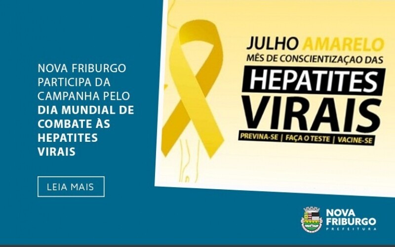 Em comemoração ao Dia Mundial de Combate às Hepatites Virais, em Nova Friburgo, o Programa Municipal de Hepatites Virais estará promovendo ações de prevenção e conscientização, incluindo a realização dos Testes Rápidos de Triagem das Hepatites B e C. O “Julho Amarelo” é a campanha para incentivar a realização dos testes. O Dia Mundial de Luta para a eliminação da doença é 28 de julho, instituído pela Organização Mundial de Saúde, OMS, porém as ações de prevenção acontecem regularmente.