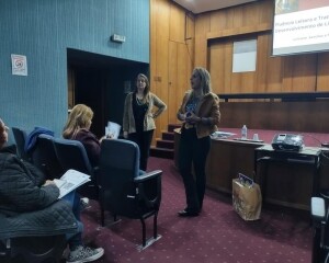 A pós-doutoranda Maria Tatiana Bagetti e a neuropsicopedagoga Leiriane Sanches ministraram o evento, com a temática fluência de leitura e transtorno de linguagem.