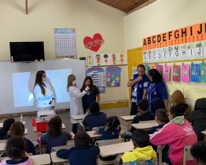 No último dia 3, os alunos da Escola Municipal Ernesto de Souza Cardinot receberam antropometria, avaliação de risco cardiovascular, aplicação de flúor com avaliação médica e encaminhamento dos casos graves, ação pedagógica sobre higiene bucal, ação sobre prevenção de influenza, orientação sobre saúde ambiental e sobre higiene corporal.