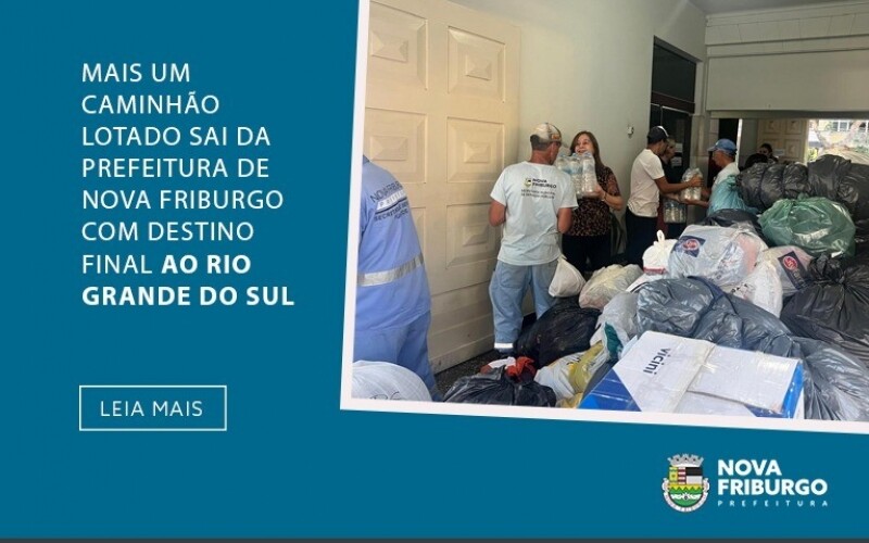 A Prefeitura de Nova Friburgo encaminhou, nesta terça-feira, 14, mais um caminhão de doações às vítimas da tragédia climática do Rio Grande do Sul. A transportadora Suíça Brasileira tem retirado de forma voluntária as doações de Nova Friburgo e ajudado a chegar ao seu destino final.
