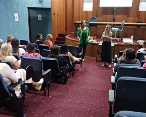 A professora doutora Tatiana utilizou um referencial teórico e prático sobre o transtorno do desenvolvimento da linguagem (TDL), ressaltando a importância do aprendizado deste conhecimento, a fim de que sinais dos transtornos sejam percebidos e encaminhados ao fonoaudiólogo, profissional que estuda e lida com estas questões. Ressaltou ainda a importância da parceria entre profissionais da educação com a fonoaudiologia, em que as crianças e professores são beneficiados. "Parabenizo e valorizo o trabalho de formação de profissionais da educação, elemento fundamental para o crescimento profissional de todos”, enfatizou Tatiana.
