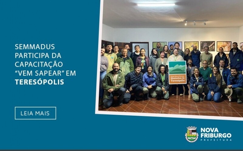 A Secretaria de Meio Ambiente e Desenvolvimento Urbano Sustentável (Semmadus) da Prefeitura de Nova Friburgo participou na sexta-feira, 19, da capacitação “Vem sapear”, organizada pela Secretaria de Estado do Ambiente e Sustentabilidade. A capacitação aconteceu na sede do Parque Natural Municipal Montanhas de Teresópolis.