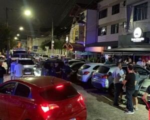 Atendendo às denúncias, a ação começou em um estabelecimento localizado na Rua General Osório, onde foram flagrados carros em fila dupla, e foi realizada verificação de documentação e música ao vivo.