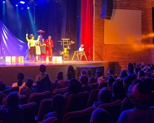 Nesta sexta-feira, 12, a Prefeitura de Nova Friburgo, através das secretarias municipais de Educação e Cultura, levou cerca de 1000 estudantes da rede municipal de ensino para assistirem ao espetáculo “ALABUMTICABUM”, da Companhia Arteira. A apresentação aconteceu no Teatro Municipal Laercio Ventura em dois turnos (manhã e tarde). O evento para os estudantes, fez alusão ao Dia Mundial do Teatro.
