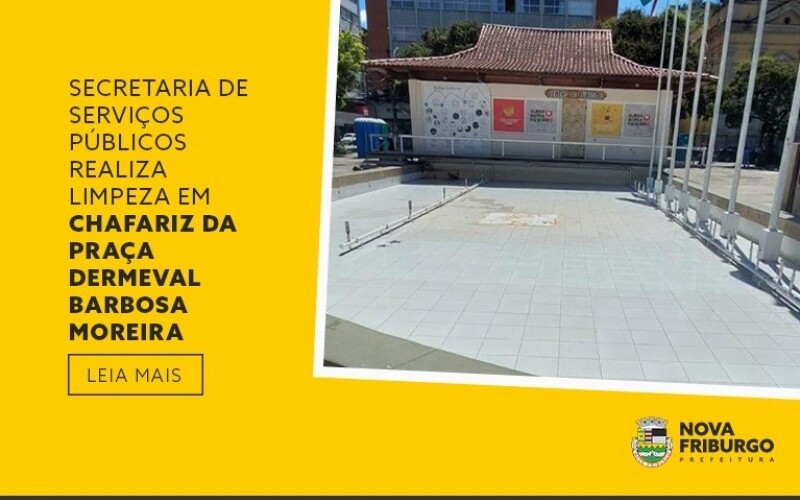 A Secretaria de Serviços Públicos segue realizando as ações pós-carnaval. Nesta sexta-feira, 16, foi concluída a limpeza do chafariz da Praça Dermeval Barbosa Moreira. O local foi totalmente lavado, já que nos dias de carnaval o equipamento que integra o complexo do Centro de Turismo acabou sendo utilizados por foliões de forma inadequada para banho e para descarte de lixo.
