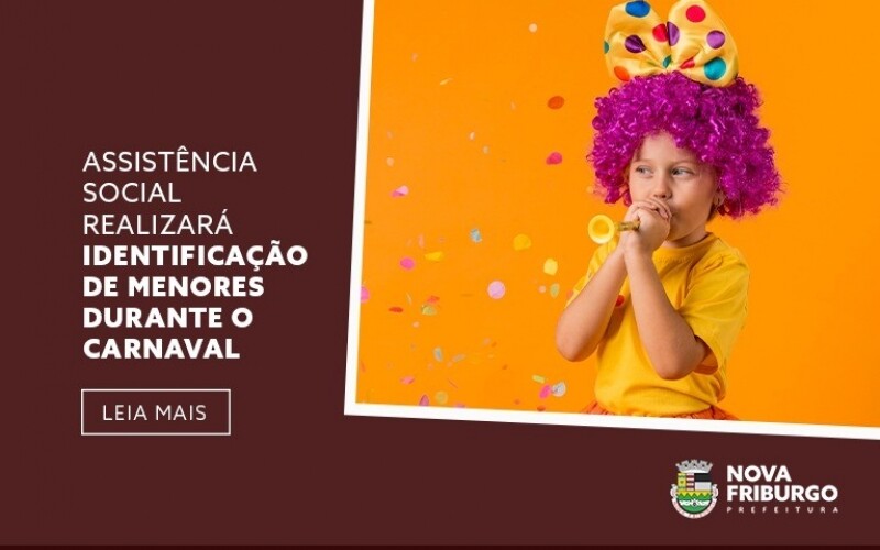 Durante os dias de folia, a Secretaria de Assistência Social da Prefeitura de Nova Friburgo, em parceria com a Secretaria de Turismo, estará realizando o cadastramento e identificação de crianças através de pulseiras. O objetivo é facilitar a localização de menores de idade caso se percam do responsável.