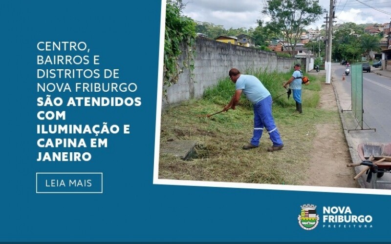 CENTRO, BAIRROS E DISTRITOS DE NOVA FRIBURGO SÃO ATENDIDOS COM ILUMINAÇÃO E CAPINA EM JANEIRO