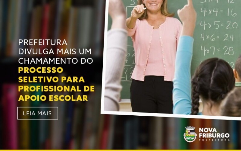 Na última sexta-feira, 18, a Prefeitura de Nova Friburgo divulgou mais uma chamamento do processo seletivo para profissional de apoio escolar, no ...