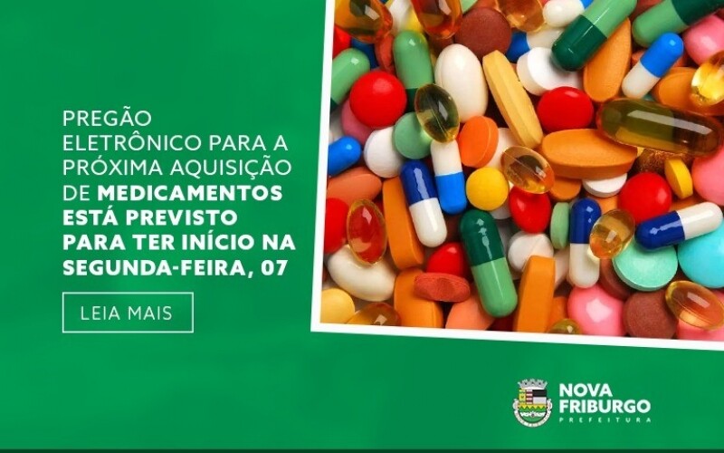 PREGÃO ELETRÔNICO PARA A PRÓXIMA AQUISIÇÃO DE MEDICAMENTOS ESTÁ PREVISTO PARA INICIAR NA SEGUNDA-FEIRA, 07 O processo faz parte do planej ...