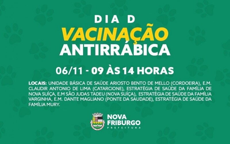 Até o momento a prefeitura já vacinou 19.348 animais A Prefeitura de Nova Friburgo, por meio da Secretaria Municipal de Saúde e da Subsecretaria d ...