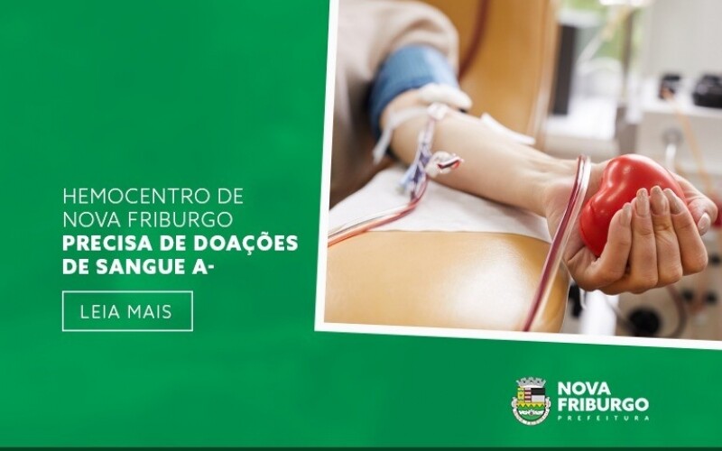 O Hemocentro Regional Enfermeira Cássia Viviane Kale Martins de Nova Friburgo está com estoque de sangue baixo para A negativo e conta com sua doa ...