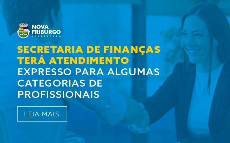 SECRETARIA DE FINANÇAS TERÁ ATENDIMENTO EXPRESSO PARA ALGUMAS CATEGORIAS DE PROFISSIONAIS A Prefeitura de Nova Friburgo, atra ...