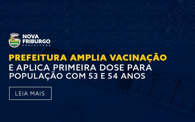 PREFEITURA DE NOVA FRIBURGO AMPLIA VACINAÇÃO CONTRA COVID E APLICA PRIMEIRA DOSE PARA POPULAÇÃO COM 53 E 54 ANOS Além disso, a Secretari ...