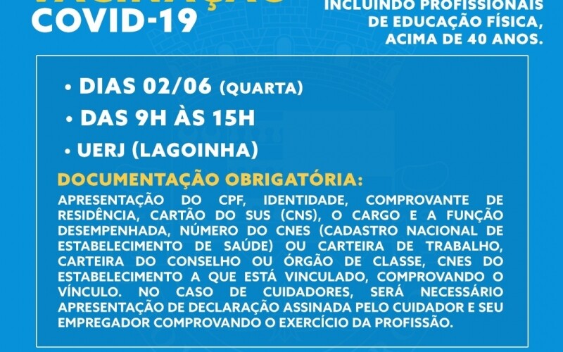 PREFEITURA IMUNIZA PROFISSIONAIS DE SAÚDE, INCLUINDO OS PROFISSIONAIS DE EDUCAÇÃO FÍSICA, AMBOS A PARTIR DE 40 ANOS, NESTA QUARTA-FEIRA, 02 A Pref ...