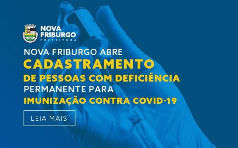 NOVA FRIBURGO ABRE CADASTRAMENTO DE PESSOAS MAIORES DE 18 ANOS COM DEFICIÊNCIA PERMANENTE PARA IMUNIZAÇÃO CONTRA COVID-19 A Prefeitura de Nova Fri ...