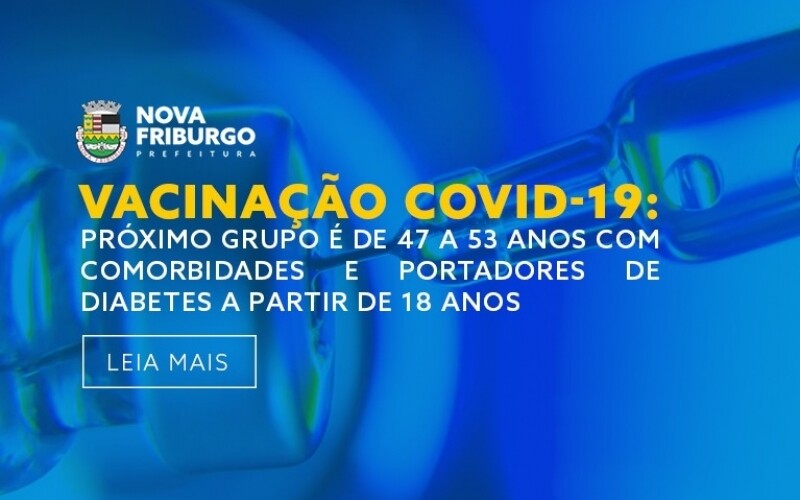 VACINAÇÃO COVID-19: PRÓXIMO GRUPO É DE 47 A 53 ANOS COM COMORBIDADES E PORTADORES DE DIABETES A PARTIR DE 18 ANOS A Prefeitura de Nova Friburgo, p ...
